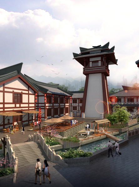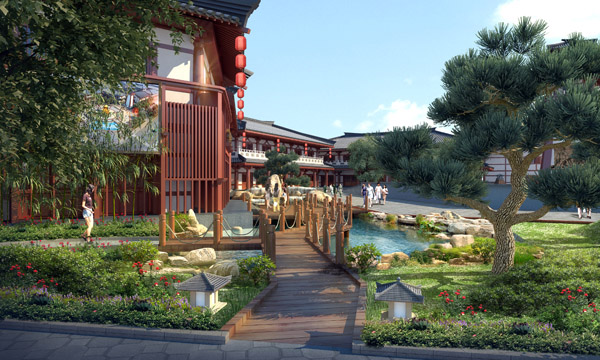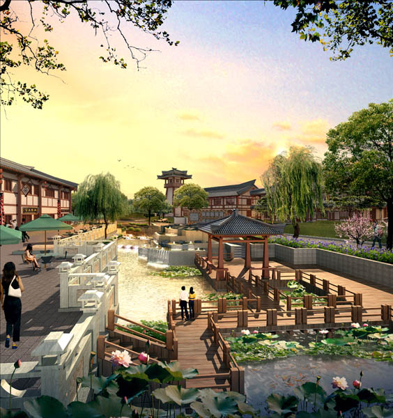 项目特色:本项目以汉代的民俗文化、科技文化、历史文化等作为设计背景,以美食、休闲、娱乐、旅游为功能主体,通过汉代风格的建筑形式、汉文化特色的景观小品,将商业消费、休闲旅游、文化展示融和在一起,构成一个具有浓郁汉代特色的商业文化景区。