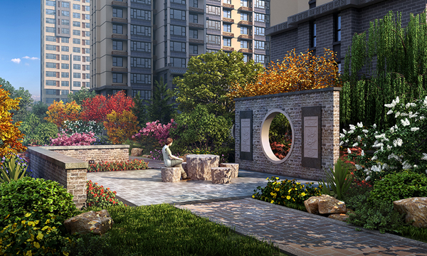 2、项目景观标志性空间,突出中式社区品质,商业氛围。